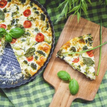 Preparing Healthy Fitness Broccoli Pie with Basil
